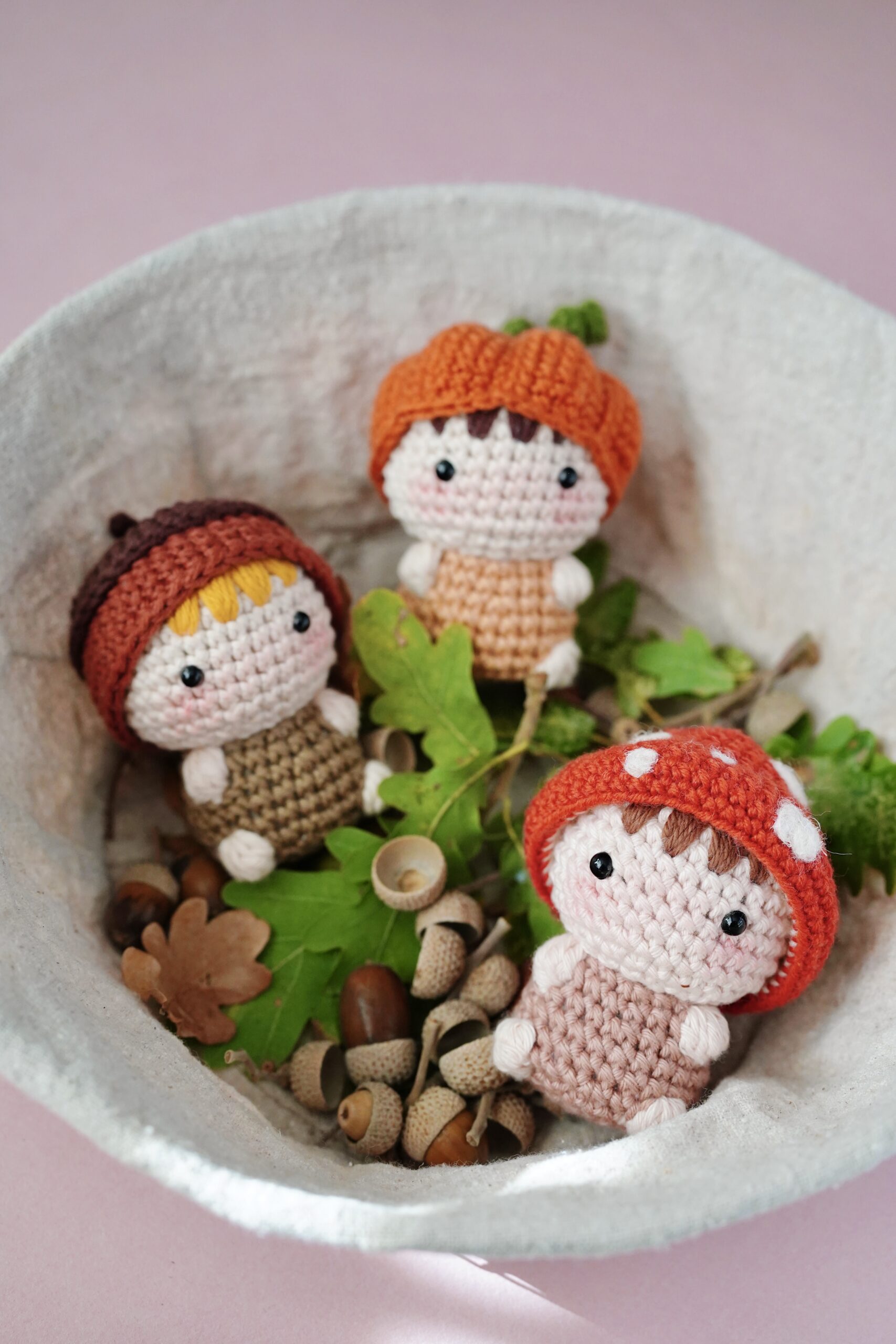Yarn (1 skein for each color): Hobbii Picapau Nude Cotton – skin 09, cappuccino 14, cashew 22, chocolate 29, dark brown 30; Picapau Cotton 8/7 – Olive 20, Brick 15, Yellow 23; DMC Merino or Katia Basic Merino yarn – orange, red, cream, green